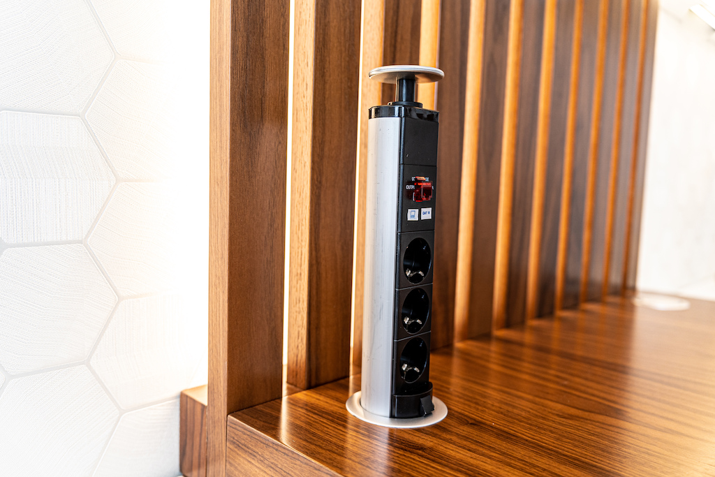 Toda a componente elétrica está oculta, mas com fácil acesso através dos interiores dos armários.