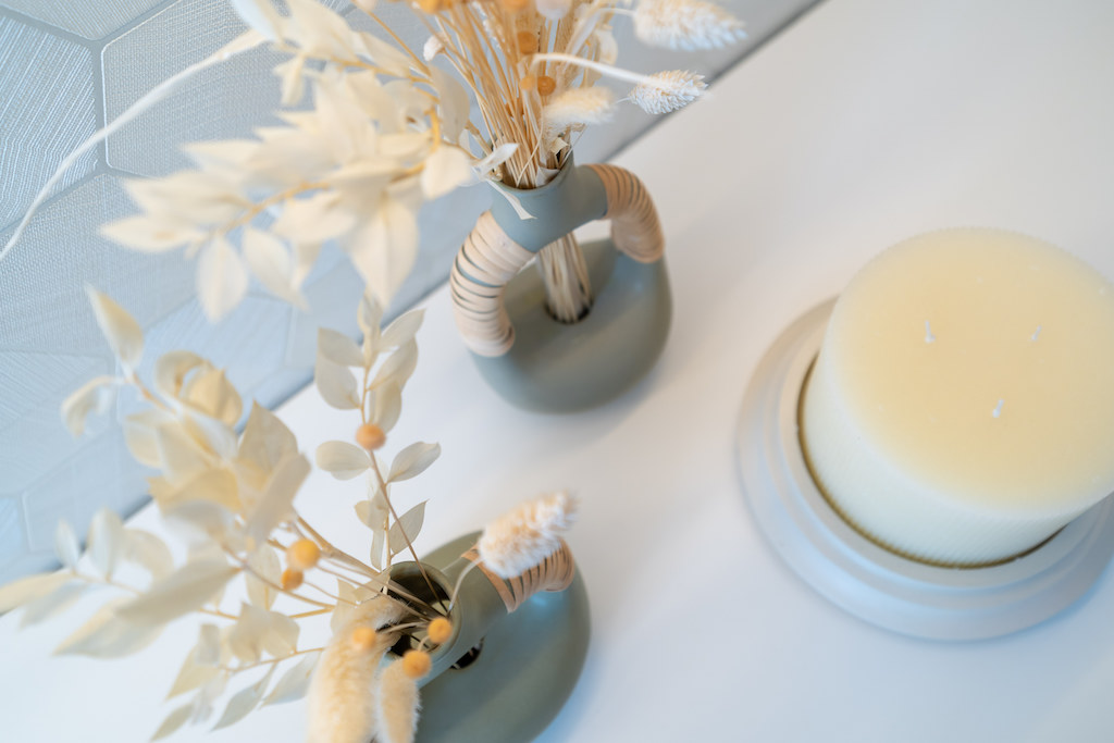 Os tons claros da lacagem, o mármore do candeeiro, os objectos e o papel de parede seleccionados conferem a elegância necessária ao escritório de casa.
